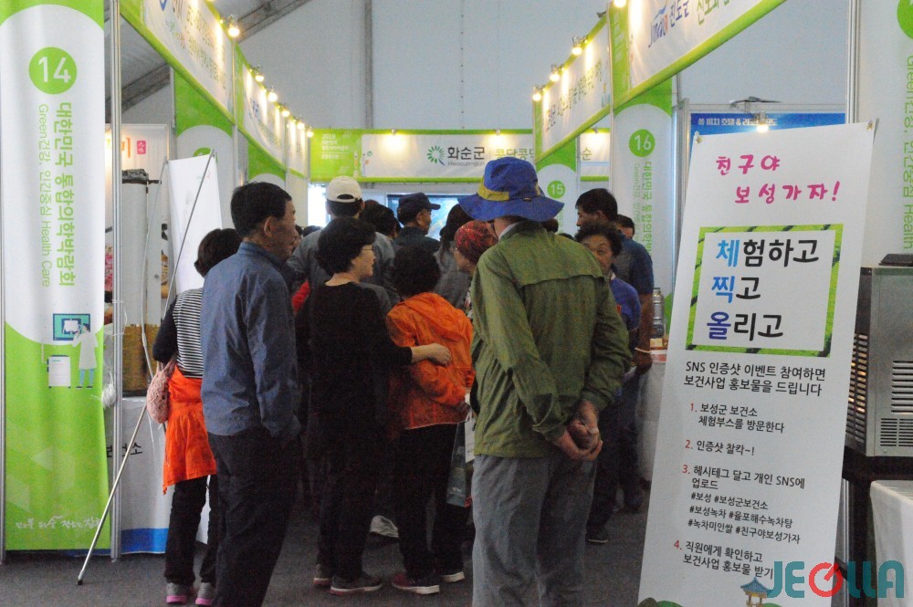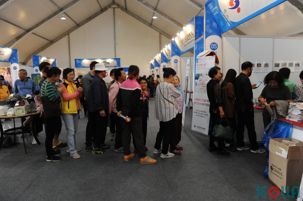 장흥 통합박람회가 열리고 있는 9일, 박람회장에는 건강에 관심 있는 인파가 대거 몰렸다. 그들은 건강 보조기를 직접 체험하거나, 자신의 건강 수치를 측정하기도 했다.