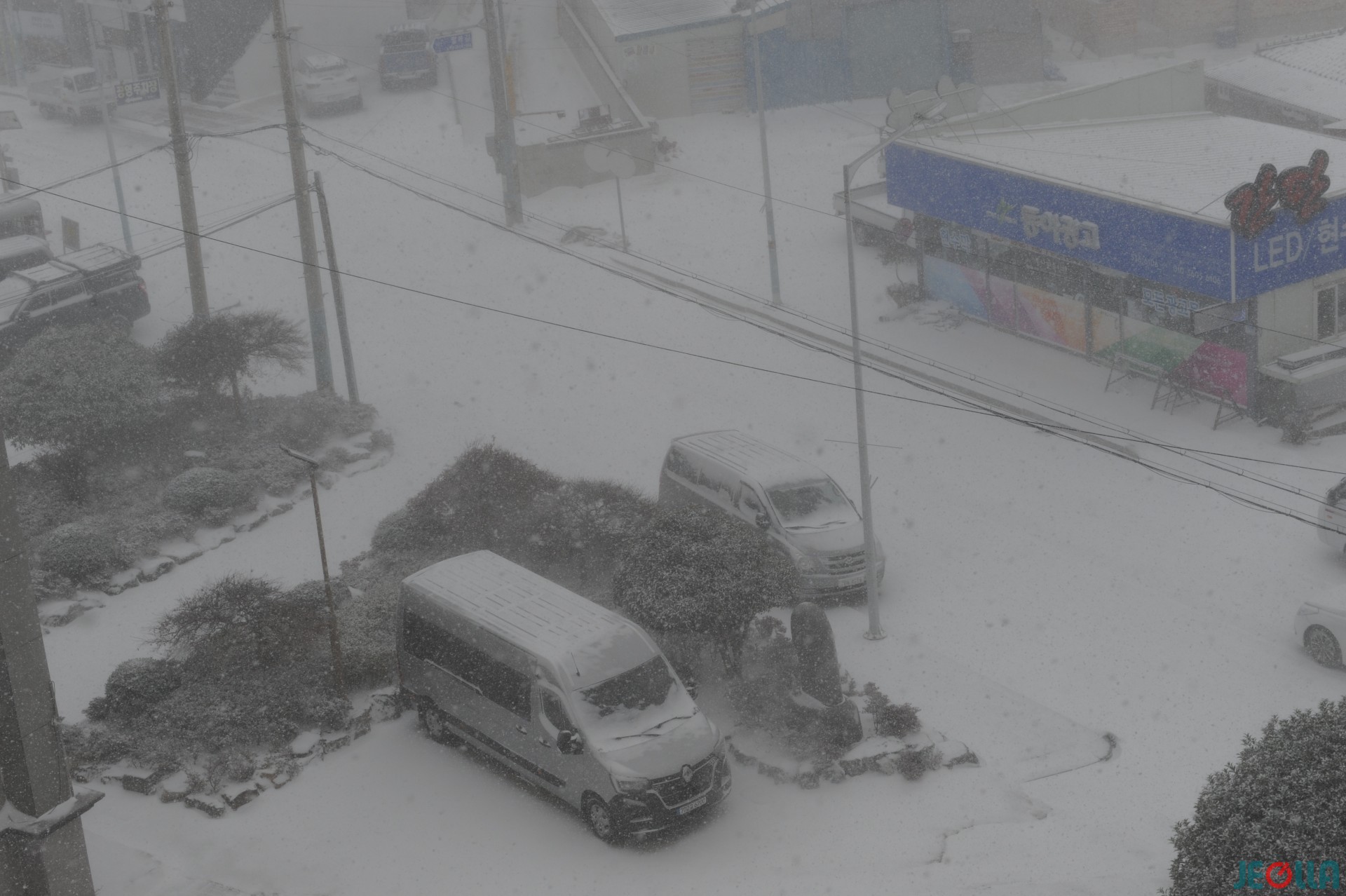 설 연휴 마지막 날인 24일, 전남은 영하 9.5도의 차가운 날씨 속에 오전 내내 된바람에 가루눈이 날리고 있다.
