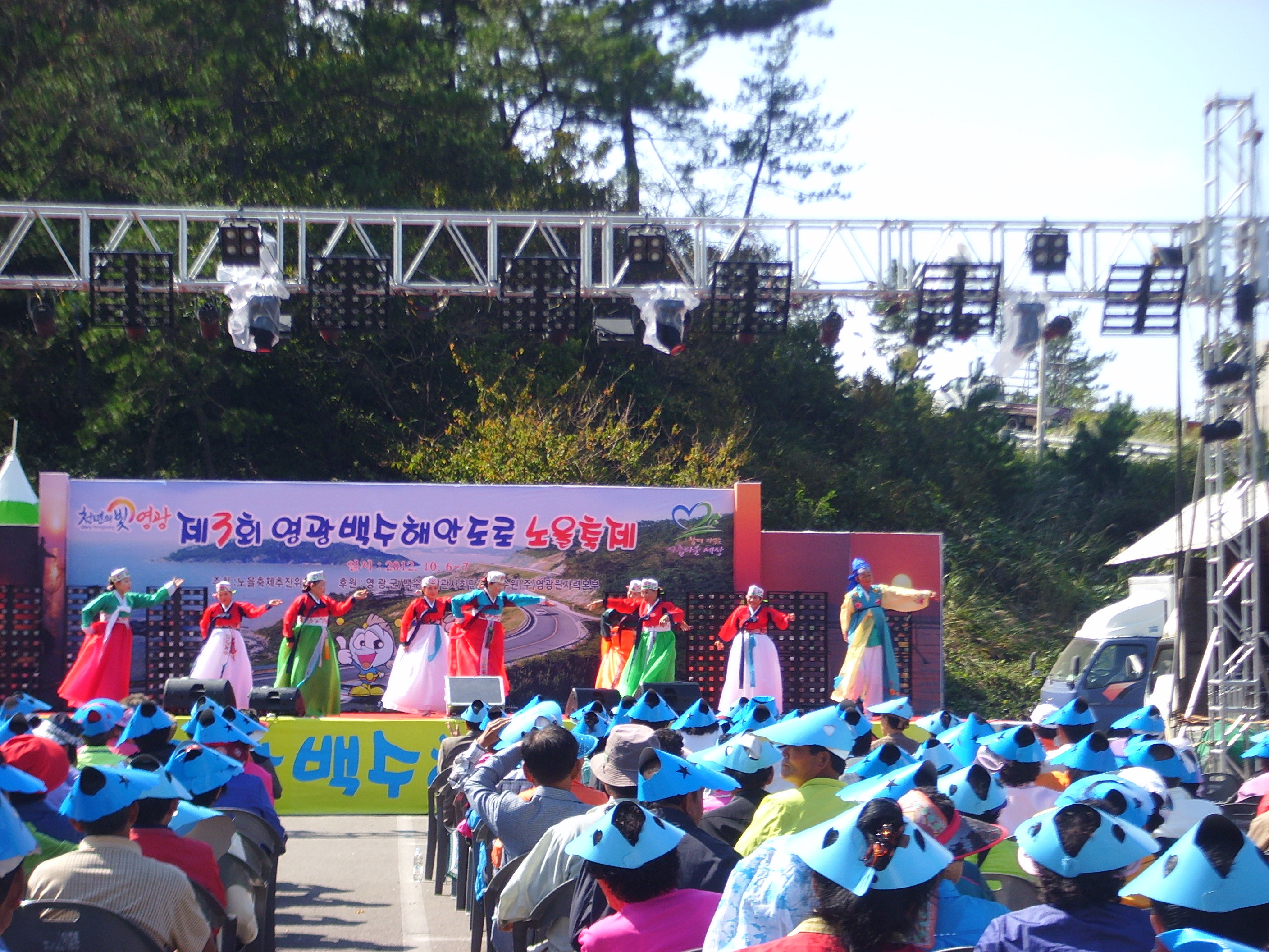 제3회 영광백수해안도로노을축제가 10월 6일 개막식을 시작으로 10월 14일까지 2주간의 주말행사로 개최되고 있다. 가을의 정취가 더해가는 10월의 주말에 영광백수해안도로에서 석양노을과 함께하는 낭만의 추억여행이라는 테마로 사랑하는 가족, 연인과 소중한 추억을 만들어가는 「제3회 영광 백수해안도로 노을축제」가 개최되어 많은 관광객들이 축제장을 찾았다. ..