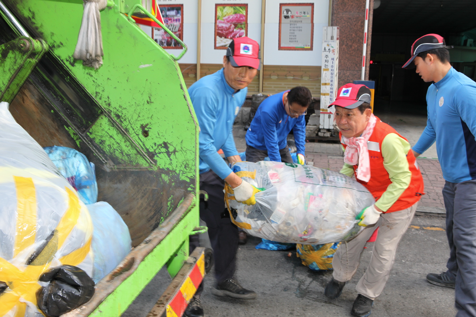 이른 새벽 쓰레기 치우는 윤장현 당선인