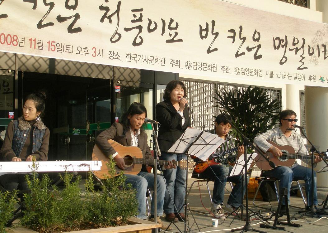 - 담양문화원, 2009 정자문화콘서트 개최 - 정자문화와 가사문학의 산실인 담양에서 ‘창송 녹죽 아래 거문고 비껴 안고’라는 주제로 2009 정자문화 콘서트가 열린다. 담양문화원이 주최하고 담양군이 후원하는 ‘2009 정자문화 콘서트’는 오는 14일(토) 오후 2시 30분부터 한국가사문학관을 배경으..